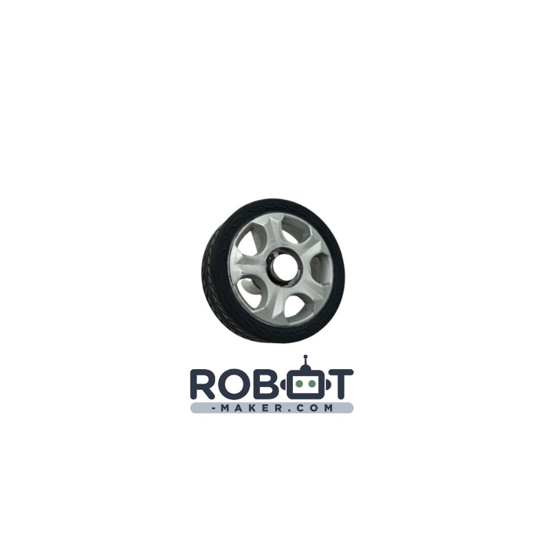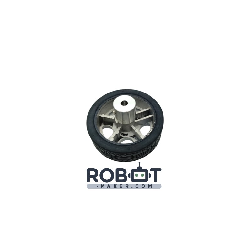 La roue est équipée d'un moyeu prévue pour un axe de 6 mm.